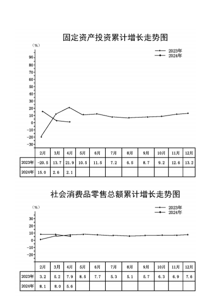 4月份,全縣經濟呈現平穩增長的發展態勢,經濟運行總體平穩向好,主要經濟指標平穩增長。1-4月份,固定資產投資、金融存貸余額、社會消費品零售總額等主要經濟指標呈現穩定增長態勢。