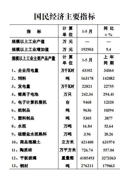 5月份,全縣經濟呈現平穩增長的發展態勢,經濟運行總體平穩,主要經濟指標平穩增長。1-5月份,固定資產投資、金融存貸余額、社會消費品零售總額等主要經濟指標呈現穩定增長態勢。